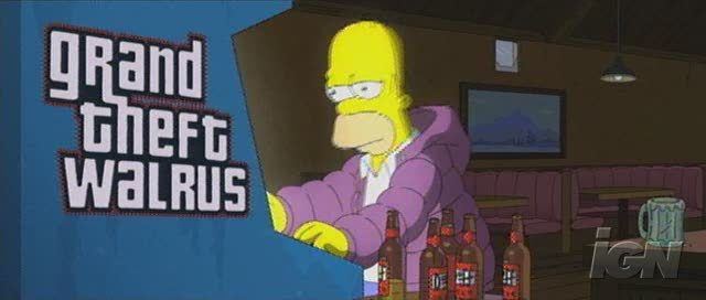 А так же забавную пародию на GTA из полнометражки по Симпсонам, где игрок управляет моржом.
