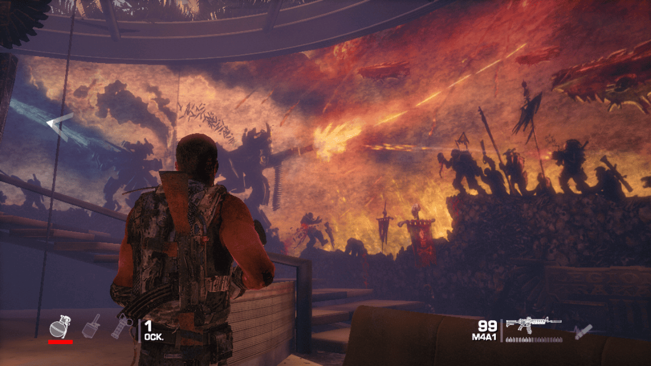 В Spec ops the line в торговом центре шла, видимо, рекламная компания свежей по вселенной игры, новинке Legions of Krakator 3. Если судить по общей стилистике статуи, можно предположить, что это местный аналог Warhammer 40000.