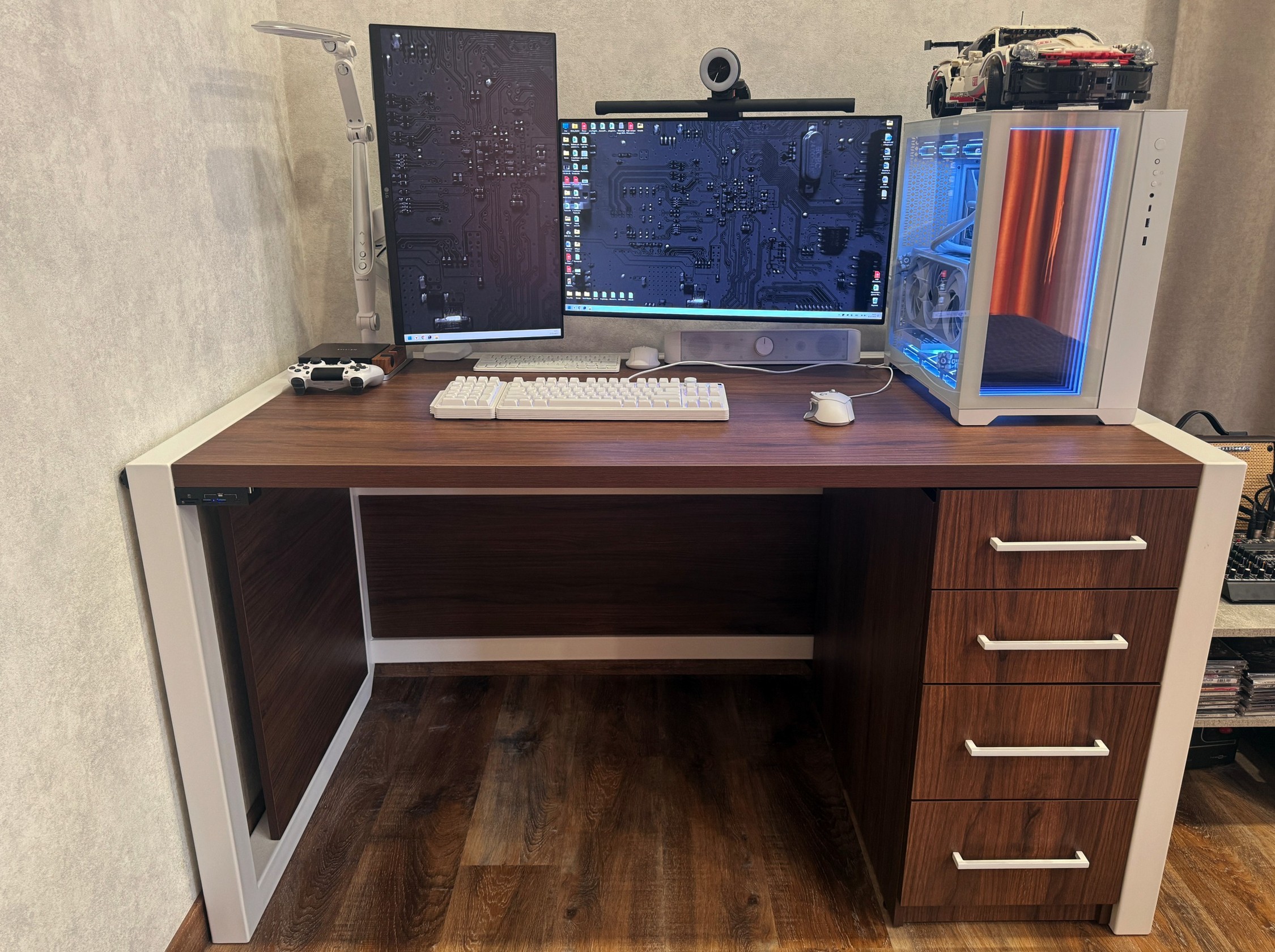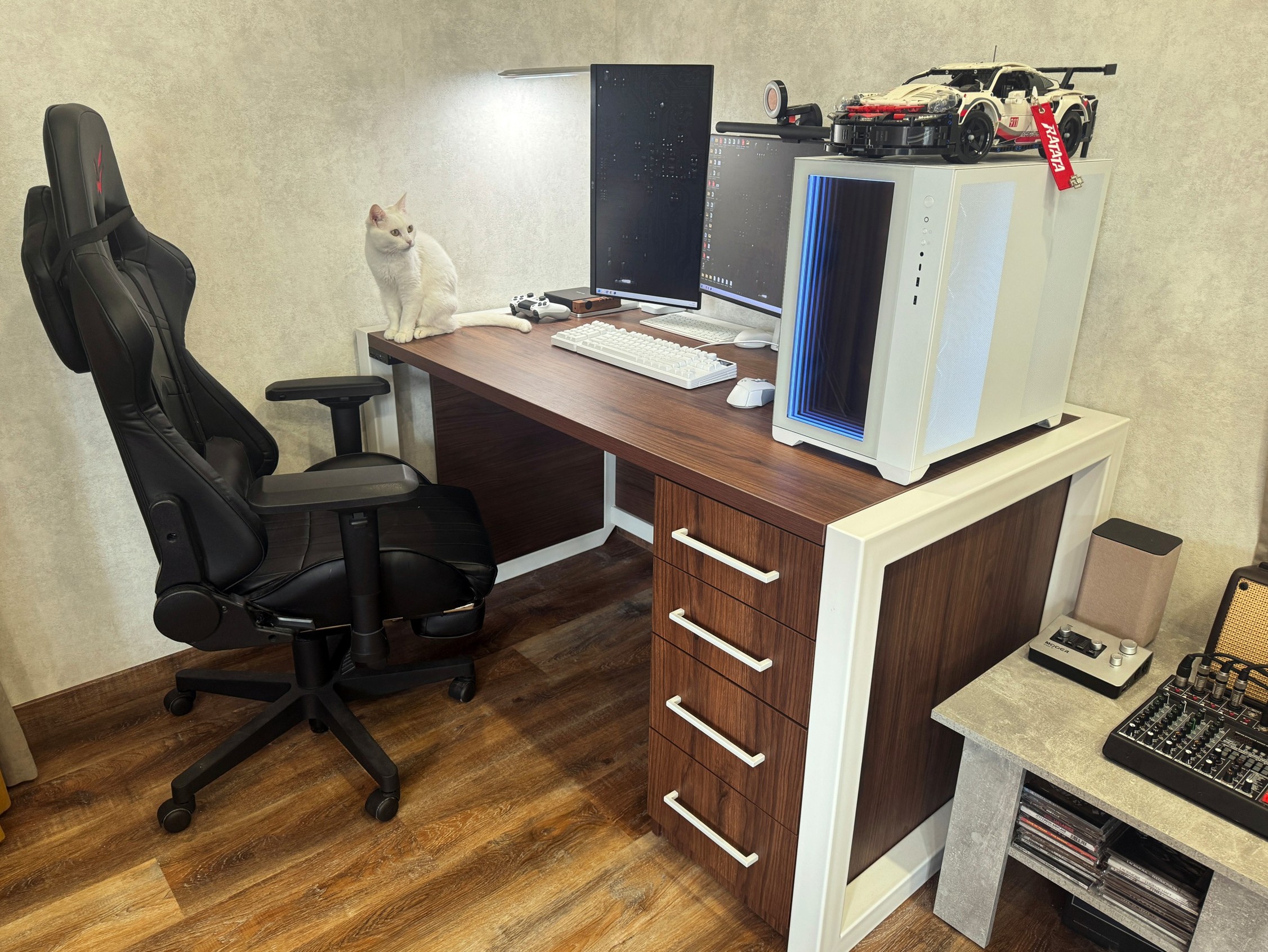 Наконец-то, блэт, дособрал стол и рабочее место в целом. Полгода, наверное, по разным обстоятельствам не удавалось воплотить хотелку. А если считать от начала обдумывания концепта все полтора.