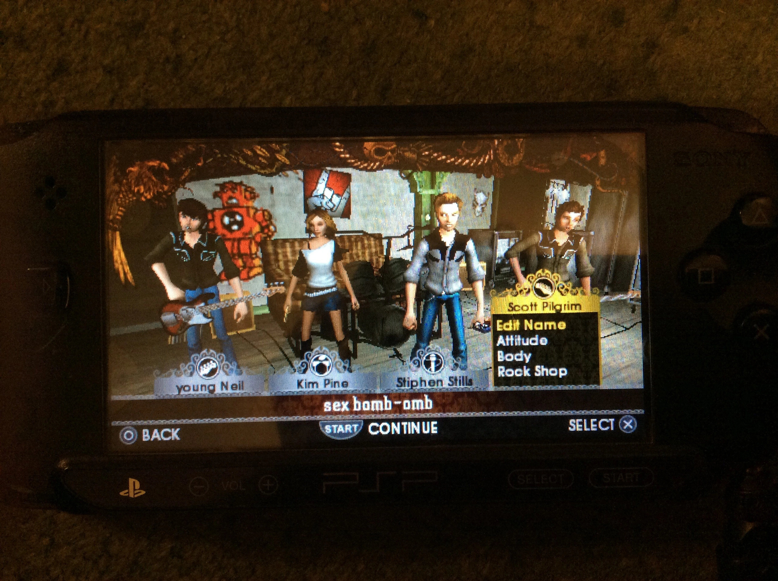 Прошёл rock band 2 раза. Первый ровно год назад. Создал тогда балванчиков, похожих на группу Sex Bomb-omb. Из комикса Скотт Пилигрим. Искал одежду более менее похожую на то, что было в фильме. На Скотта позже нацепил его фирменную синюю куртку, но на единственном изображении которое осталось он в рубашке.