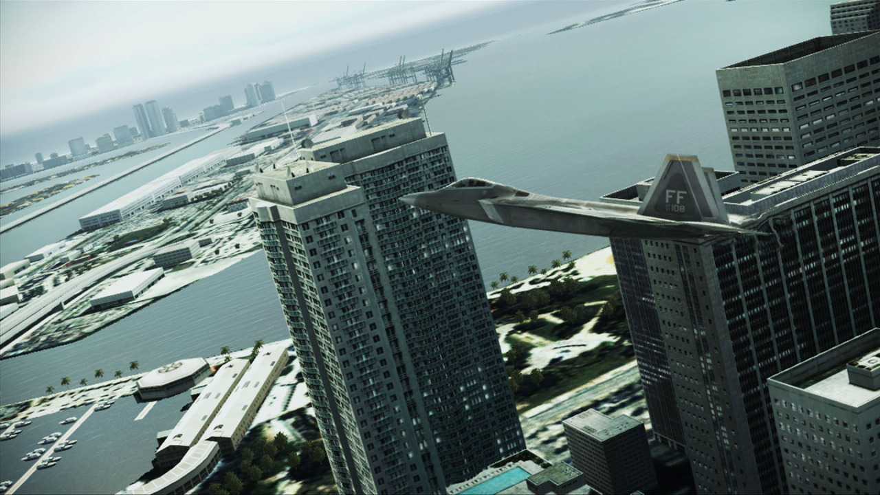 Пролетая мимо небоскрёбов города Майами, вы увидите, какие отличные спецэффекты демонстрирует игра: от зданий и преследуемого самолёта во все стороны летят осколки, а последний, весь в огне, портит обзор следом вытекающего горючего. Особенно бдительные уже заметили, что город максимально приближен к подлинному Майами. Не заметили? Тогда всю продуманность городов покажет Москва, которая выглядит во стократ лучше и более приближена к своему оригиналу. А вы бы хотели уничтожить танки, окружившие Белый Дом? Или пролететь на высокой скорости мимо небоскрёбов «Москва-Сити»? Не упустите возможность! И, конечно же, что может быть детализировано красивее самолётов в игре про самолёты. Истребители доскональные копии своих оригиналов, несмотря на то, что среди них есть прототипы, не запущенные в серийное производство. Вы скажете, что должен быть хоть один изъян в такой «реалистичной симуляции». А вместо него присутствует небольшой сюрприз для ценителей ретро изображения (такие ведь бывают, а то для кого дизайнеры старались?). Пролетев в десятке метров над землёй, станет заметно, что одно «нормальное здание» прикрывает целый квартал, состоящий из раскрашенной поверхности. Правда, прогресс по отношению к другим частям серии ощутим. Теперь пикселей в такой поверхности в два раза больше! Но снова поднявшись на пару сотен метров, это забывается, и перед нами предстаёт вся красота бескрайнего синего неба…