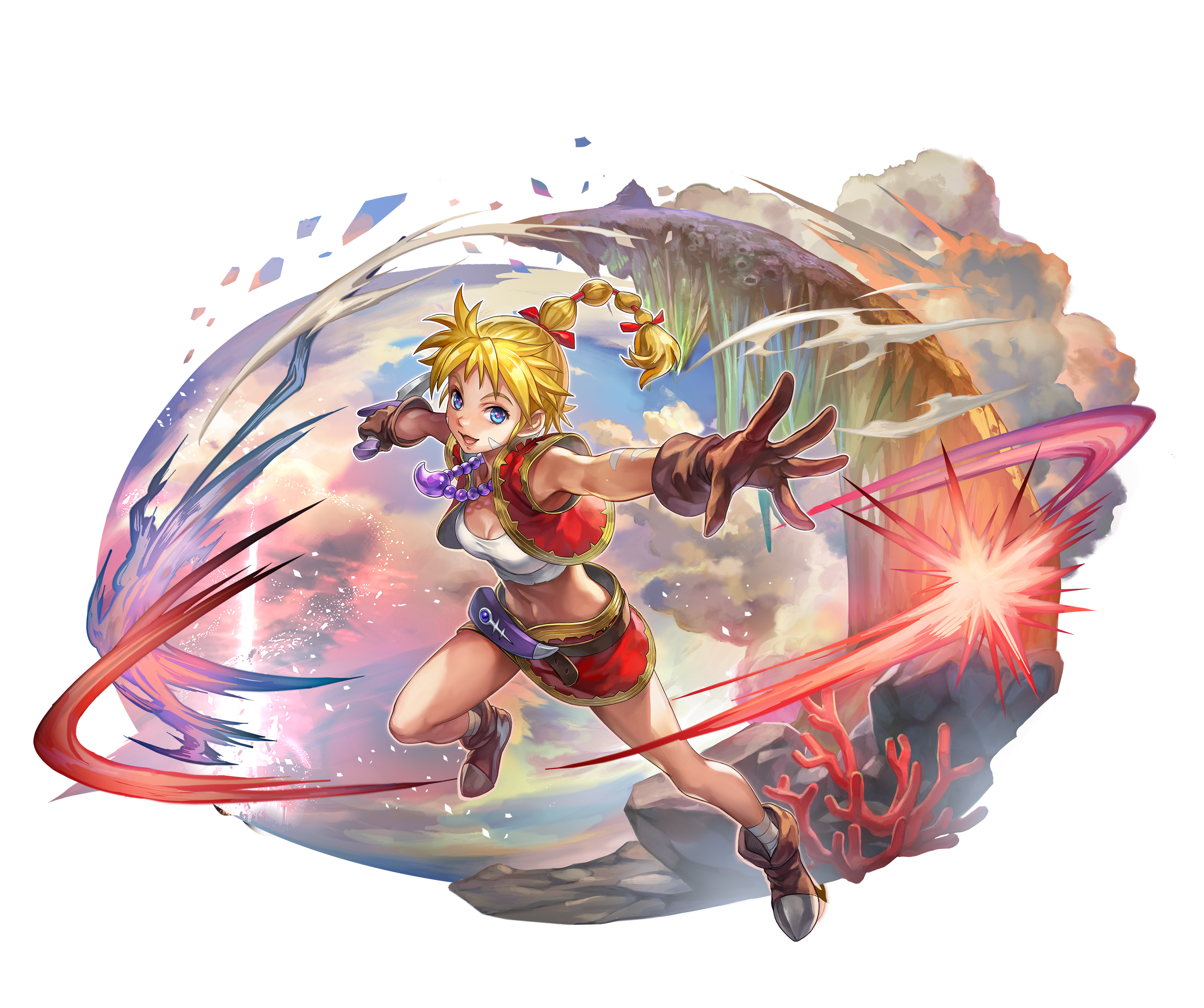 Като: Я не слишком много думал об этом. Концепция была проста персонажи Chrono Cross встречаются с героями Another Eden и отправляются в совместное приключение. Но мне изначально хотелось, чтобы это происходило под музыку из Chrono Cross. Так и было создано вступительное видео, что должно было настроить игроков на соответствующий лад. Не люблю и не практикую подобное, но этот случай особенный!