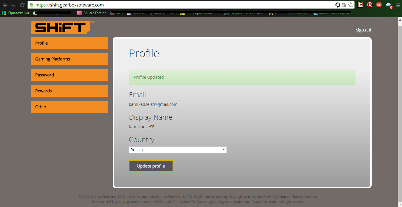 Нет, не со мной. Я вам нафиг не сдался. В Pre-Sequel мы можем зарегистрировать учетную запись SHiFT, за что мы сразу получим кучку лунных камней (аналог эридия на Пандоре). Так же на Facebook'e игры и в Twitter'e Gearbox мы можем получить кучу интересной информации, в том числе и специальные коды, введя которые в специальном меню игры или на странице SHiFT, мы получим n-ное количество золотых ключей от сундука с оружием в центре города. Так что не щелкайте клювом, господа, иначе не успеете!