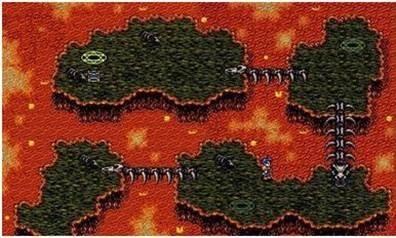 Зайдя в вулкан, переходите по мостику в виде скелета на островок. Расправившись с монстрами, перебегайте на следующий. Тут, расправившись с новой партией чудищ, забирайте содержимое сундука и бегите к телепорту на маленьком островке.
