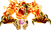 Этого перца вы встретите два раза в игре. Всего две атаки три огненных гейзера и файрболл по прямой (первый бой) и двойной огненный дракон и огненная волна по земле (второй бой). Валите его копьем или метательным оружием с душой Skelerang (скелет кидающий два бумеранга). Подойдут опять также летучие крысы или Mini devil. |