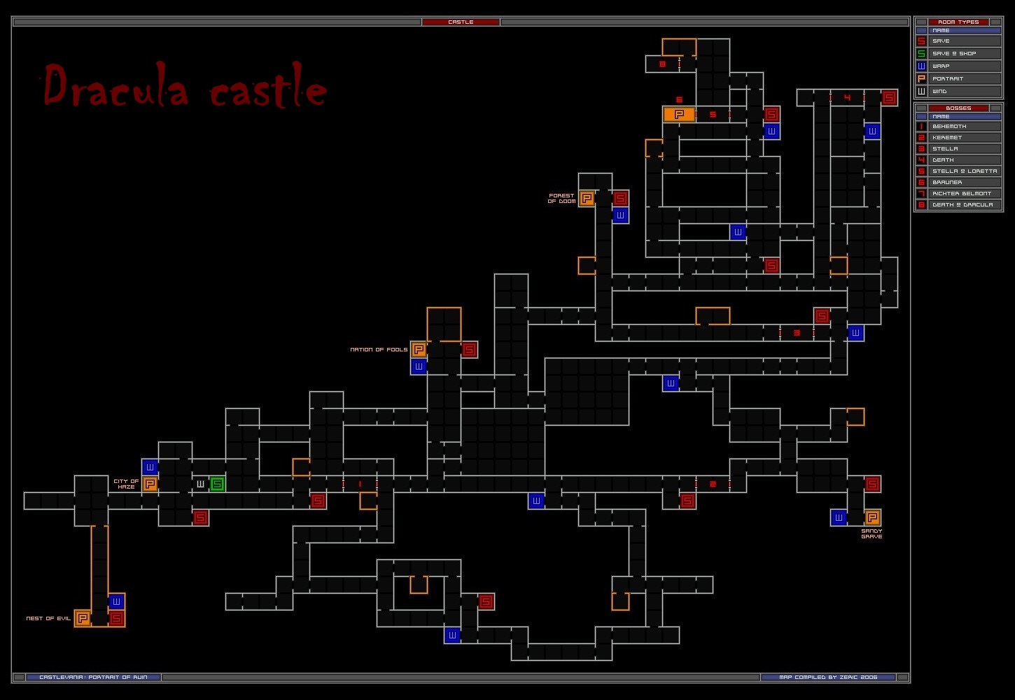 Однако, здравствуйте. Решил создать статью со всеми картами Castlevania: Portrait of Ruin. Отдельное спасибо сайту castlevaniacrypt.com с которого они были взяты и отредактированы. Все они облагорожены и прилизаны под размер 1400х1000 (нажмите на изображение, чтобы увеличить) лично мной.