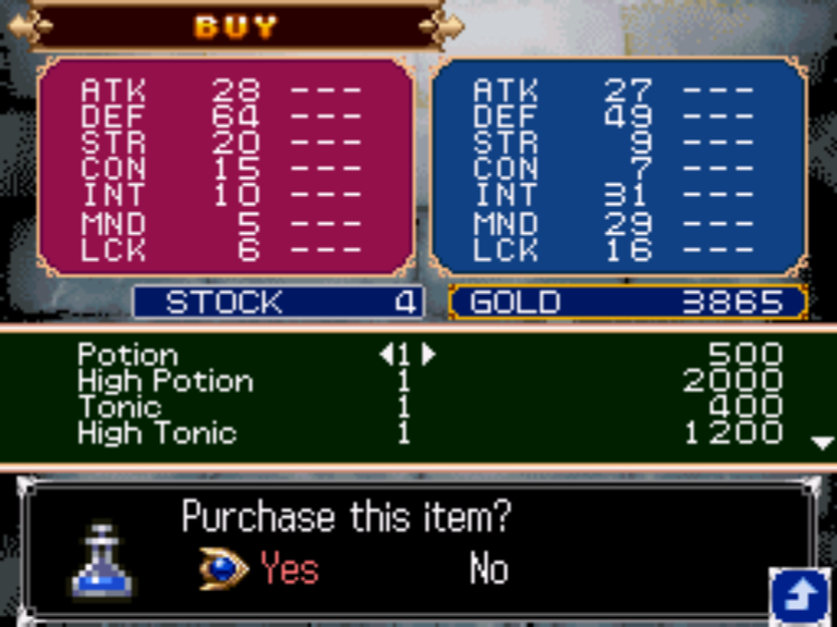 | Прохождение | Есть несколько способов повысить INT. Заклинание INT Boost прибавит вам 30 очков. У Винсента можно купить Dalmatica (+10), Silent Sandals (+3), Holy Mantle (+3 или +6, если возьмете две штуки), если делаете много покупок будет доступно Paludamentum (+5 или +10). В Nation of Fools можно найти Holy Veil (+10). Также INT (как и все другие характеристики) увеличивается при получении уровня. |