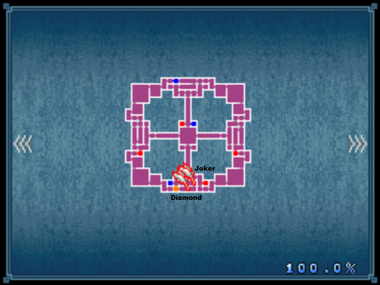| Прохождение | Все 5 карт выбиваются из врагов. Diamond из Coppelia, Joker из Killer Clown, оба противника обитают в Nation of Fools. Club выпадает из Treant в Forest of Doom. Spade из Yorick в Forgotten City. Последнюю карту Heart, можно добыть из Nyx в локации 13th Street. |