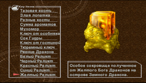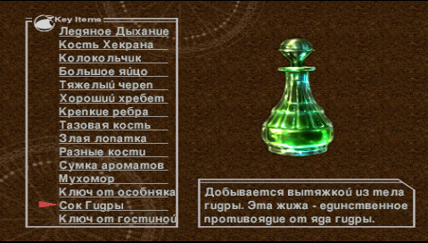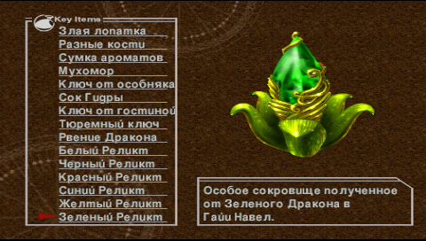 , но есть и такие, что действуют сами по себе. Посмотреть ключевые предметы можно во вкладке Key Items главного меню.