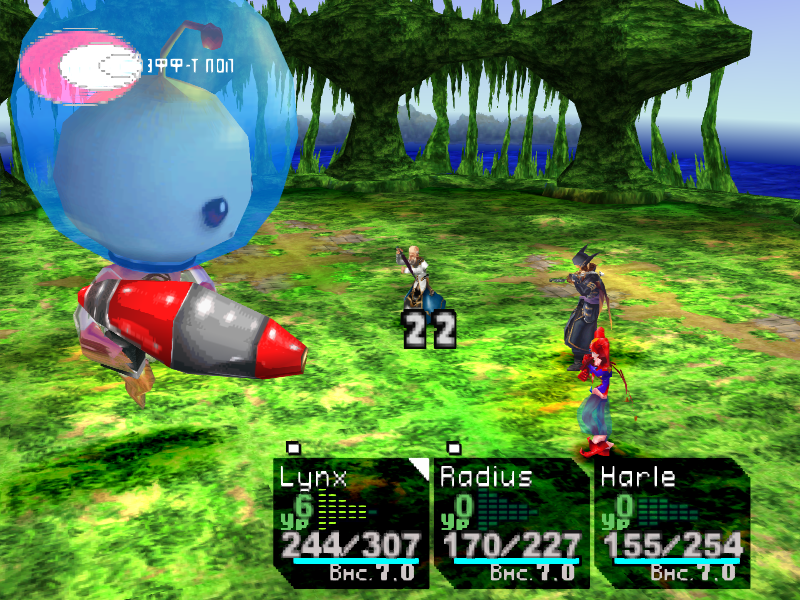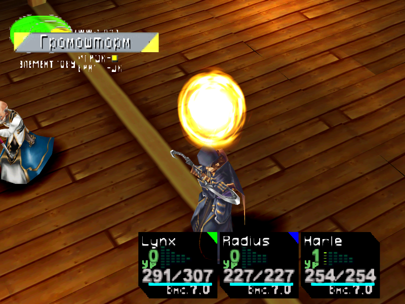 Бой несложный, но битва будет долгой, так как сильных «белых» персонажей у нас нет. Атакуйте, используйте сильные белые элементы [СвятойСвет] и [ФотонСтруя]. Босс может подгадить техникой [ВыхлГаза], что вешает статус Darkness (слепота уменьшает процент попадания физических атак в 2 раза).