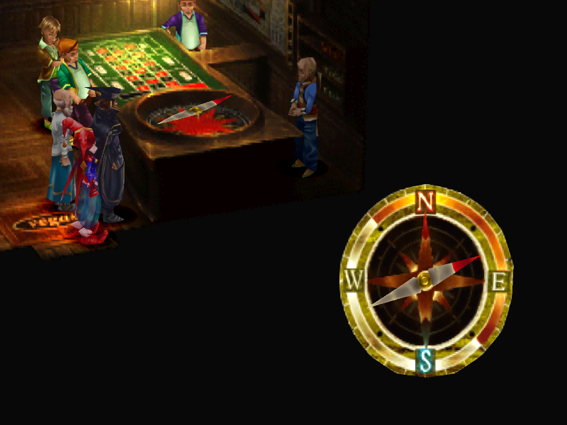 После разговора идем в казино (комната в левом нижнем углу экрана). Там можно выиграть Радужную Ракушку. Есть небольшой трюк: при нажатии на паузу стрелка «останавливается». Ловите момент, когда стрелка будет в юго-западной четверти, снимайте игру с паузы и сразу нажимайте