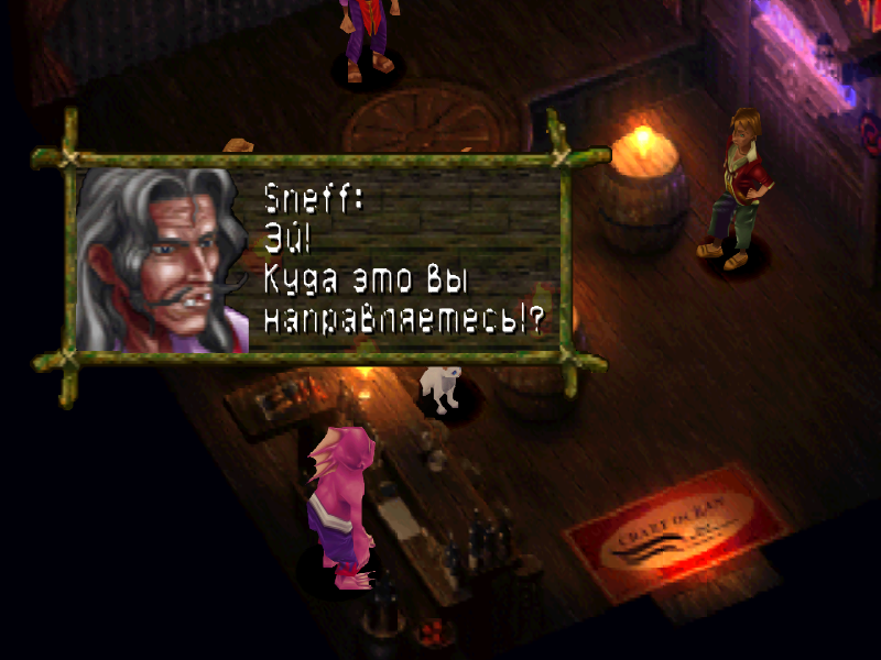 Снефф скажет, что пошел бы с нами, но задолжал Фарго и теперь вынужден работать на корабле. Мы навестим его позже, а пока идем к капитану и берем реванш. После победы в казино следуем на нижний этаж и сворачиваем направо: да, теперь пират нас пропустит.