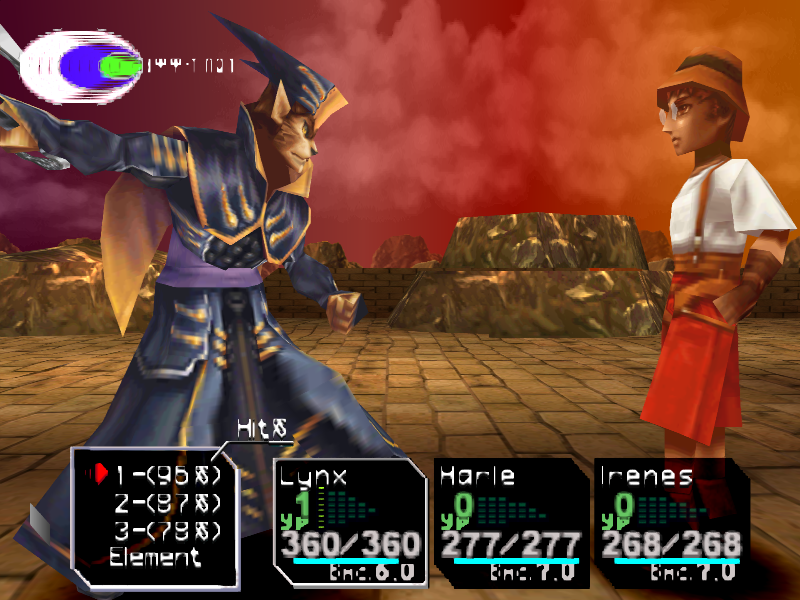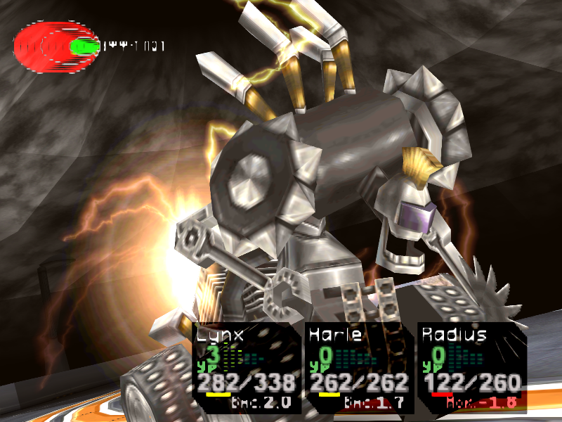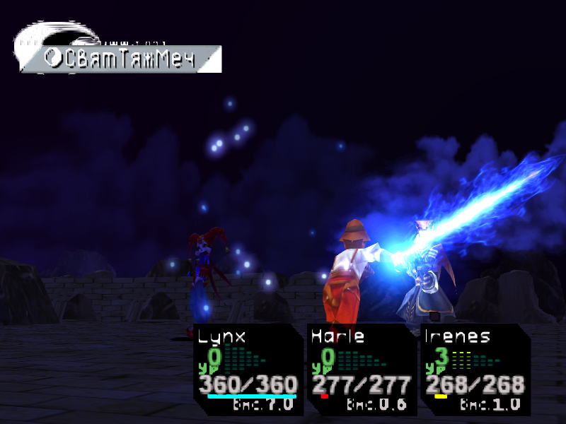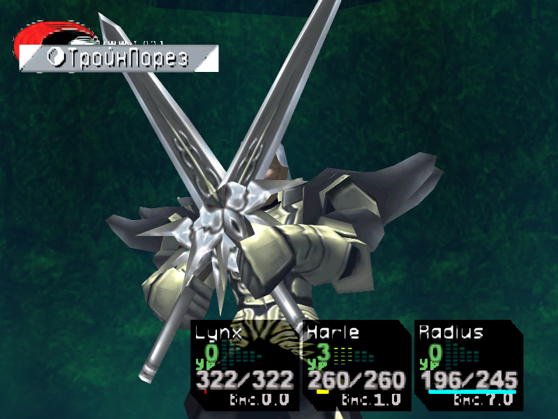 Это довольно сильный босс. Своими обычными атаками он наносит около 60 НР урона, а техникой [ТройнПорез] может снять до 200 НР! Вам понадобится очень много лечащих элементов. Атакуйте Линксом, используйте его техники, а также сильные черные элементы вроде [СвобПаден], и убьете его прежде, чем он вас.