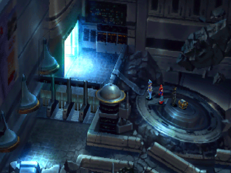 Подойдите к большому монитору и узнаете, что руины эти из будущего, а конкретнее из 2300 года. Также вам покажут инопланетное существо-паразит, которое «облюбовало» планету. Кодовое имя существа Лавос. Но после этого отключится питание монитора и ничего больше вы узнать не сможете.
