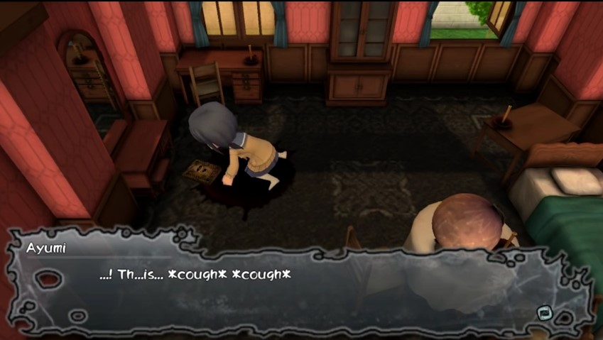 Последовавшее после этого нападение анатомической модели не оставляет игроку выбора: Аюми в любом случае воспрепятствует самопожертвованию Кишинумы, аргументируя это тем, что тоже не хочет, чтобы кто-то ещё умирал (примерно то же самое происходит на башне, когда Кишинуме достаётся уже от Мисто). Вероятно, староста действительно не желает увеличивать груз своих ошибок, но нет ли в этом чего-то ещё, сказать трудно.