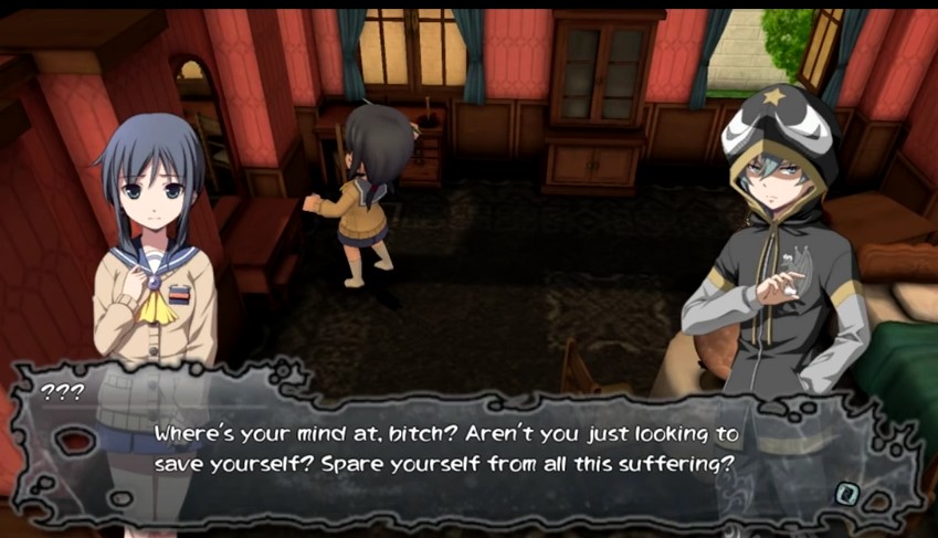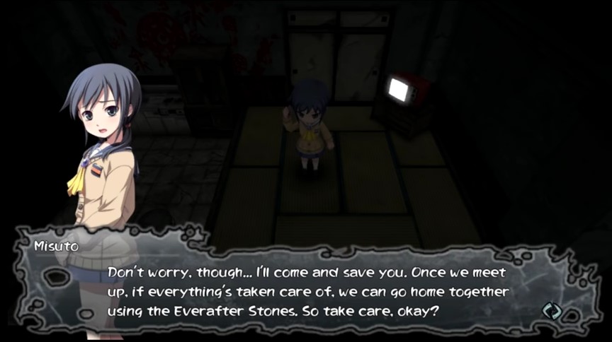 Начать, пожалуй, стоит с того, что истеричное поведение никак не ожидавшей попадания в Тендзин девушки настолько же предсказуемо, как и то, что осознание своей вины в случившемся отразилось на её действиях и мыслях. То, что происходит в игре Blood Covered, за исключением некоторых моментов, оставленных напоследок, уже прекрасно объясняется информацией, указанной выше. Более подробного разбора требует только одна из неправильных концовок пятой главы, но эта история нуждается в дополнительном пояснении и будет рассмотрена чуть позднее. Больше всего вопросов вызывает поведение Аюми после возвращения в реальность. И начинается череда таких вещей с безрезультатной попытки воскрешения погибших друзей…