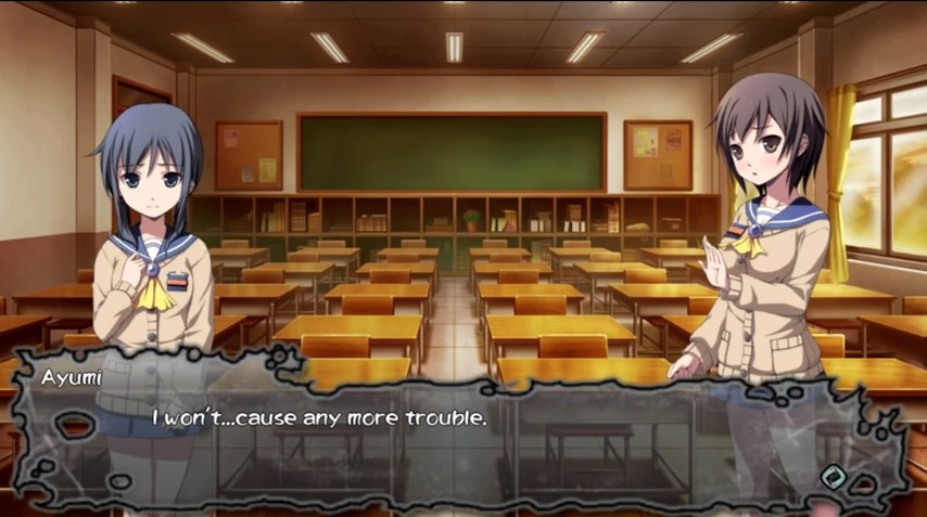 Начиная свои «приключения» с подавленного состояния, Аюми рано или поздно приводит себя в чувства — при этом механизм возвращения к адекватным реакциям сильно различается в зависимости от того, может ли староста на кого-либо положиться.
