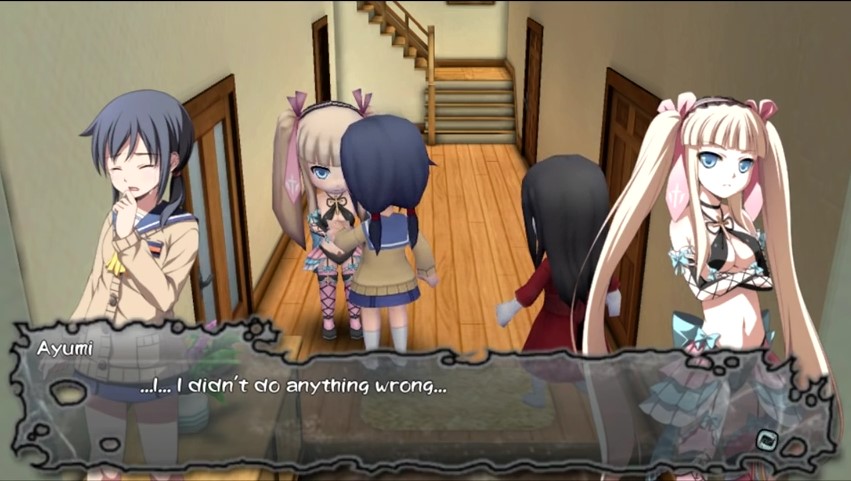 Вновь встретив друзей, Аюми видит, что и на этот раз удача не на её стороне: теперь Мочида уже утешает потерявшую свой клочок куклы Наоми, что для Шинозаки в её состоянии могло показаться просто издевательством. Аюми больше не сдерживает злость, инстинкт самосохранения приказывает ей избавиться от соперницы и направить на себя забираемую ей заботу. И если бы Шинозаки жаждала простого избавления… Изменённое состояние сознания начинает снимать тормоза, позволяющие принимать адекватные с точки зрения морали поступки. Не думая ни о чём, кроме собственной боли, Аюми хочет заставить соперницу страдать и унижаться, тем самым поднимая свою собственную самооценку.