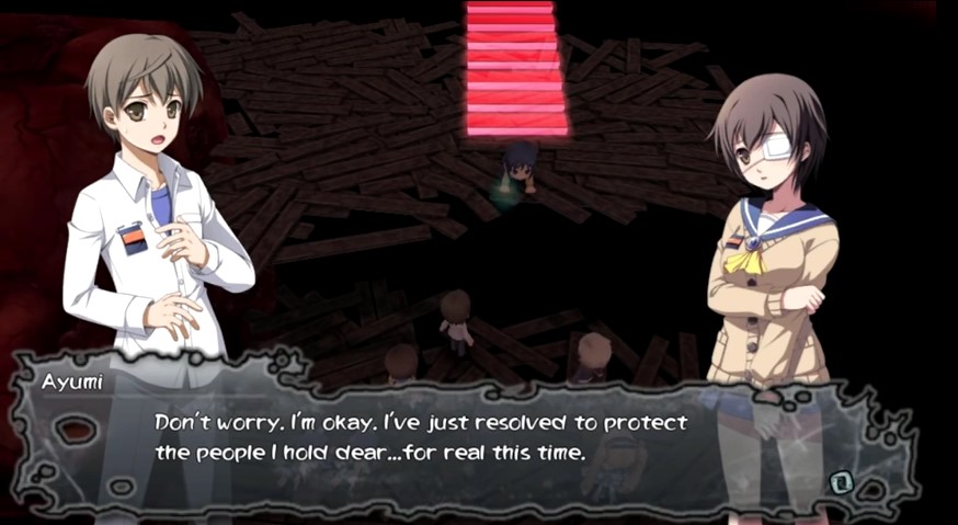 На этом моменте в анализе характера и поступков Аюми Шинозаки, пожалуй, можно поставить точку. Каким бы противоречивым и порой раздражающим ни был этот персонаж, его поступки вполне можно объяснить и понять. Роль Аюми во всей истории Corpse Party оказалась слишком велика даже для неё самой, однако ей удалось не только в той или иной степени исполнить её, но и пройти долгий путь, включающий в себя ошибки, расплату за них и борьбу с собственными слабостями. Не сказать, что у Аюми всё получилось идеально, но именно это и делает её по-настоящему живым персонажем, который с достоинством может занять своё место во вселенной Corpse Party.