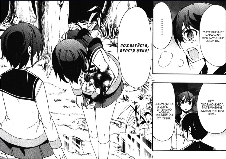 «Так что слушайте внимательно. Сейчас у нас ровно три задачи». Аюми включает «режим старосты» спустя пару минут после излечения от одержимости, будто ничего и не произошло.