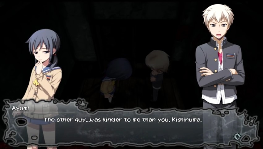 Очевидно, что в конце концов Аюми начинает испытывать к напарнику по меньшей мере глубокую привязанность и доверие (и прекрасно осознаёт его собственные чувства), однако даже если на самом деле это является чем-то большим, школьница просто не может признаться в этом из-за сохраняющихся комплексов. С учётом этого её последние в игре слова, обращённые к Кишинуме, вполне можно трактовать как нечто большее, чем обычную благодарность.