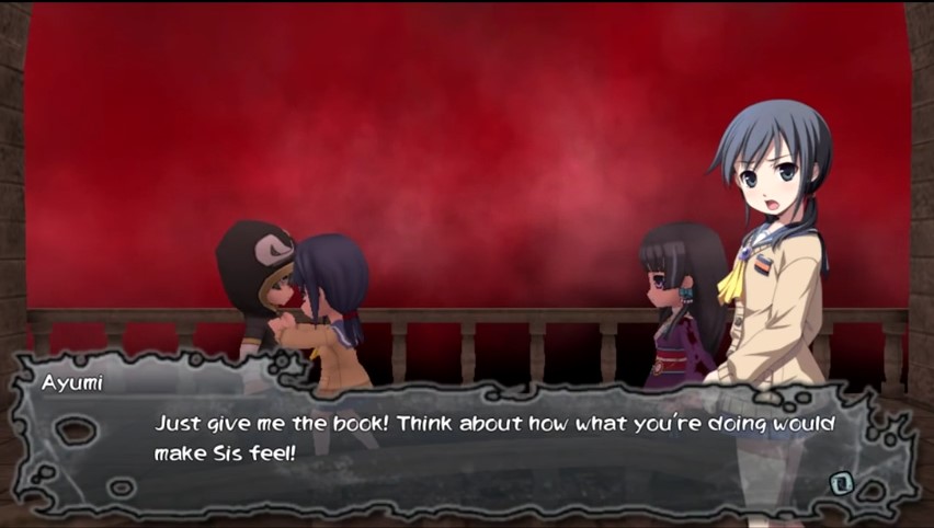 Так оно в конечном итоге и получается. Найдя способ вернуть хотя бы воспоминания о погибших друзьях, Аюми в очередной раз отказывается от отрицания своей вины остальными и пытается пожертвовать жизнью ради исправления ошибок. Её не останавливает даже то, что цена оказывается больше, чем простая смерть — Книга Теней находит удачный момент, чтобы напомнить о слабости духовных сил Аюми и соответствующей этому плате: полном стирании из мира. Школьнице довольно долго удаётся держать себя в руках — чтобы друзья не волновались слишком сильно и не посеяли достаточно сомнений для отказа от продолжения.