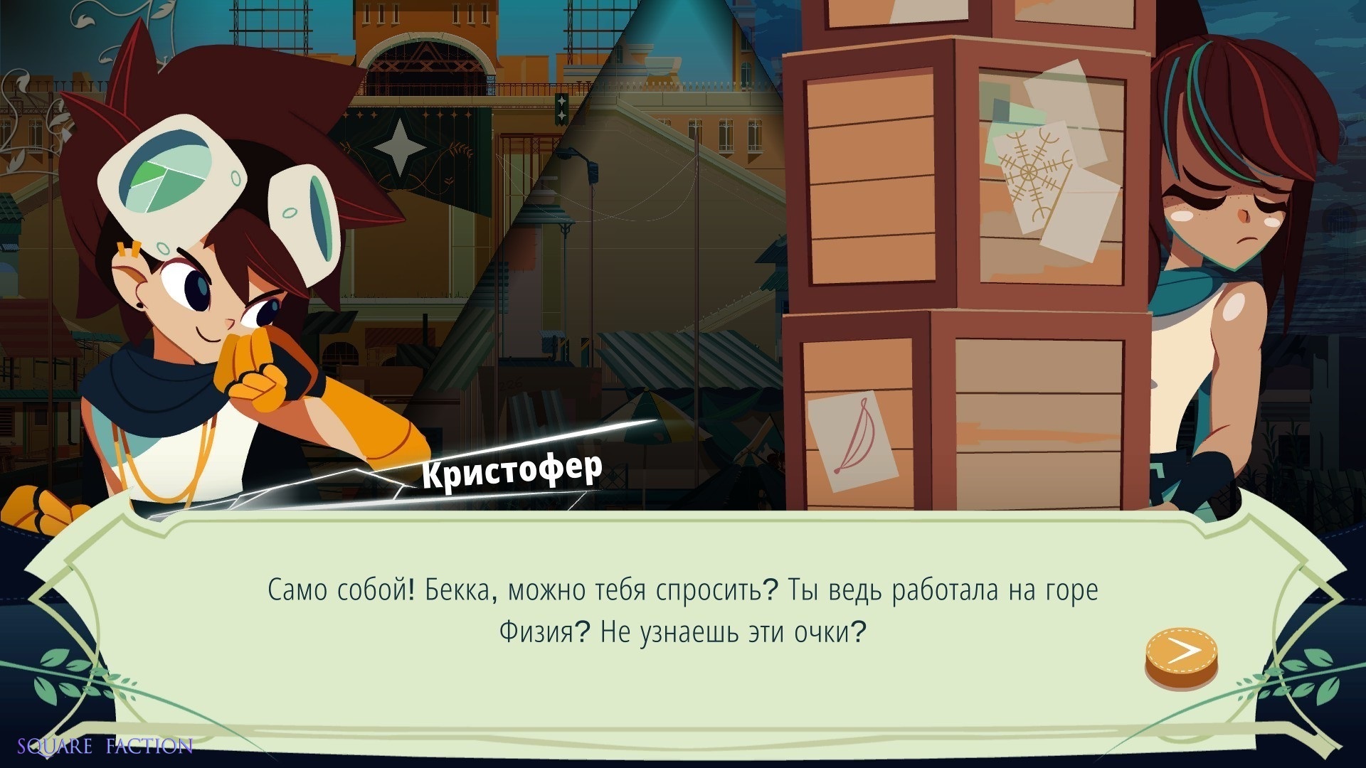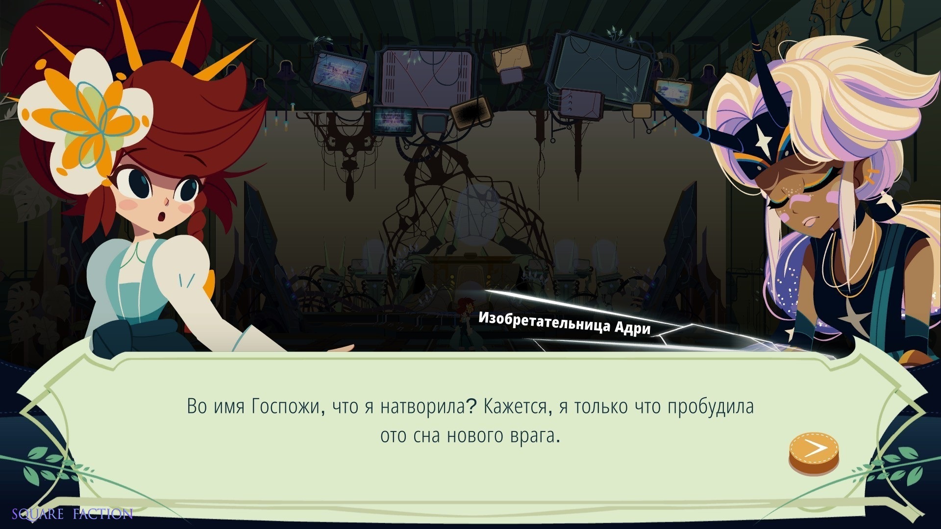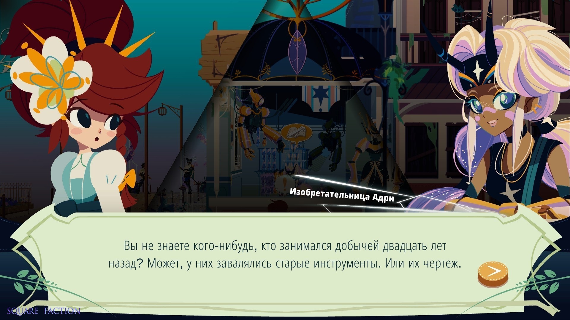 • Поговорите с Адри, вы найдете ее за восточным прилавком в закрытой части города. Адри недовольна тем, как продвигается производство кристаллов. Ей кажется, что она способна на большее.