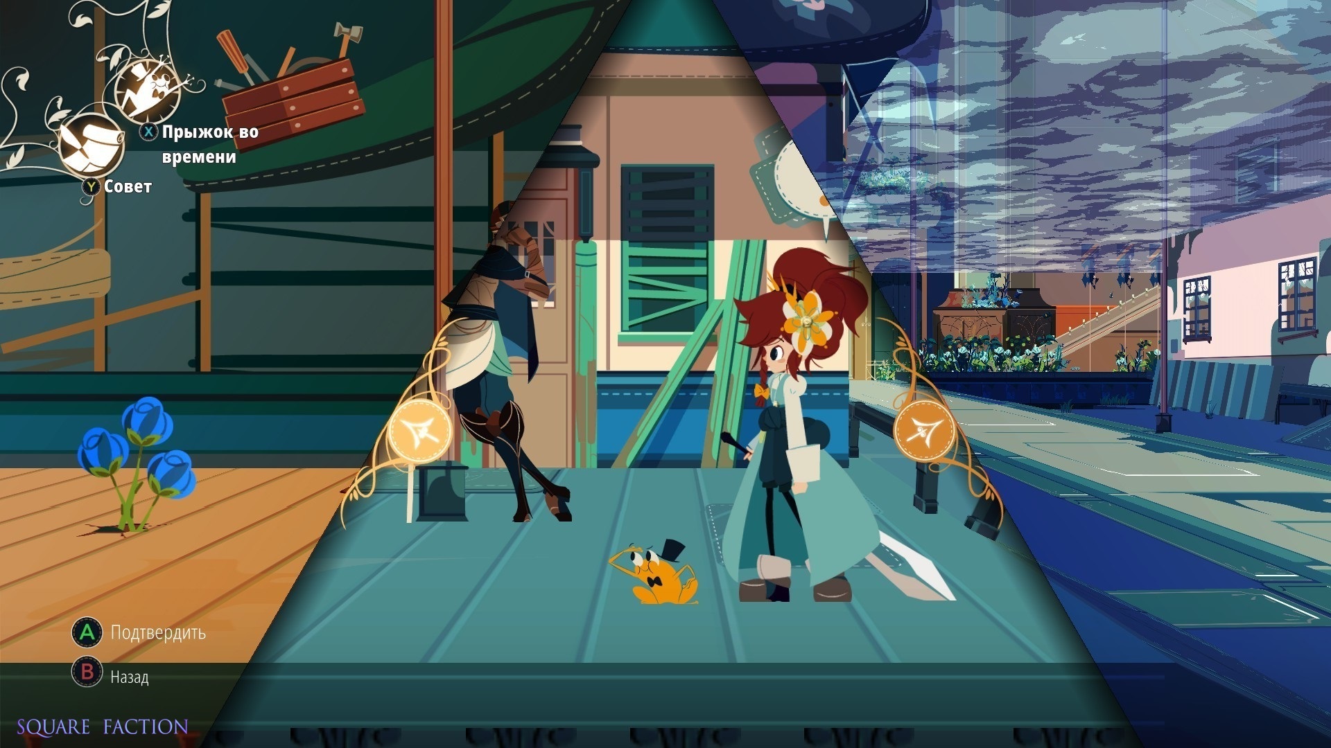 «Красная роза» находится по левую сторону от ворот в другую часть города. Отправьте Матиаса в прошлое чтобы сорвать ее.