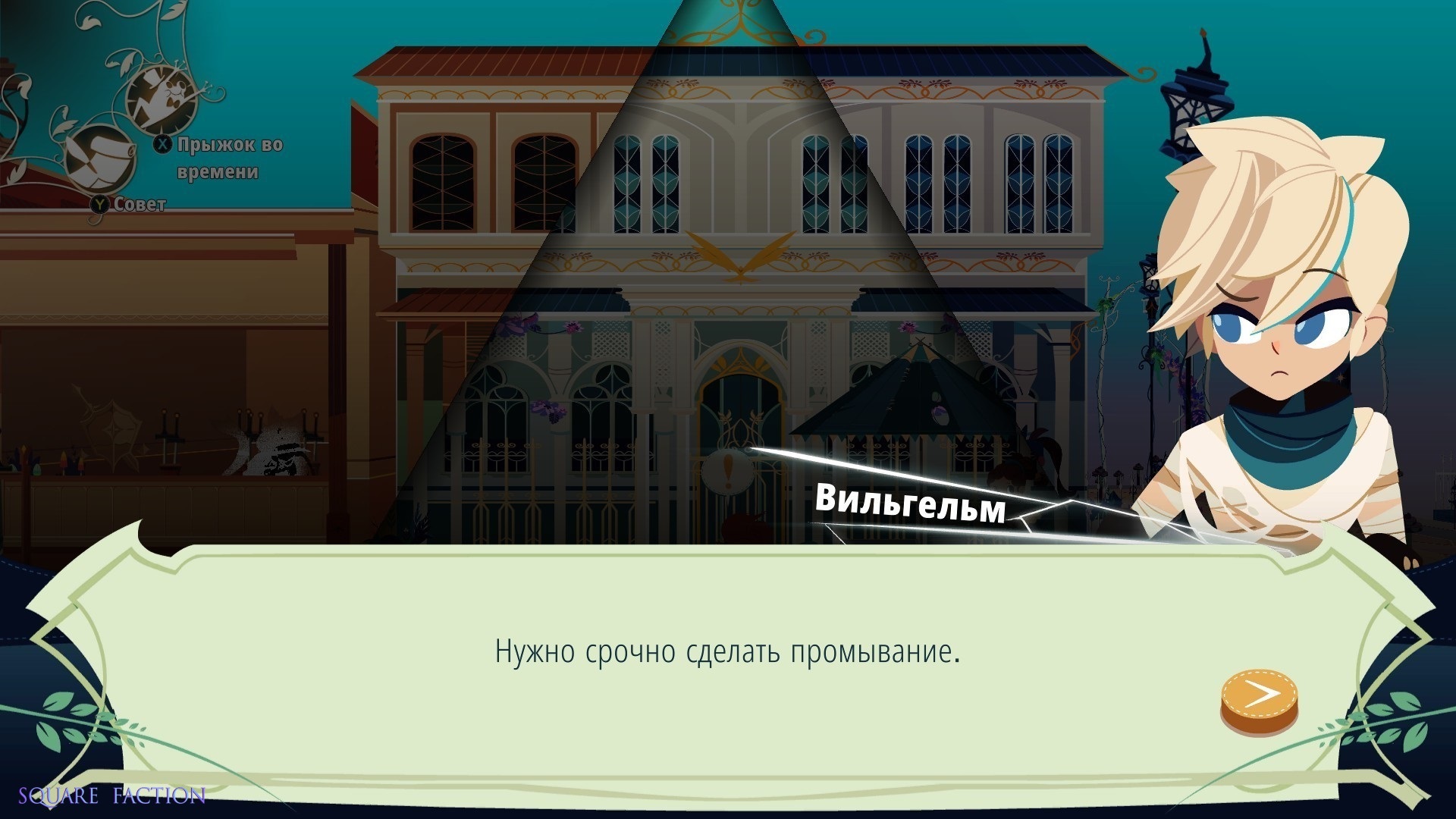 Семья торговцев оказалась в закрытом городе и, кажется, у них проблемы. Подслушайте с помощью Матиаса разговор Эмилии в будущем. Оказывается Марио подцепил заразу, когда развлекался в водах канализации. Вернитесь и дайте ему лекарство, чтобы избежать печальной судьбы.
