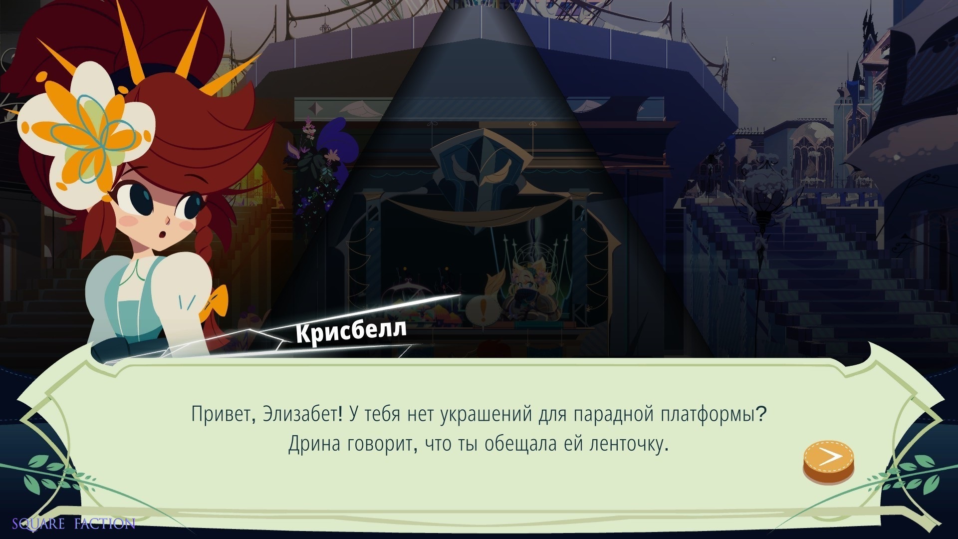 • На втором ярусе поговорите с длинноволосой блондинкой. Дрина мечтает сделать будущие парады еще лучше. Может быть, Крисбелл сможет исполнить эту мечту?