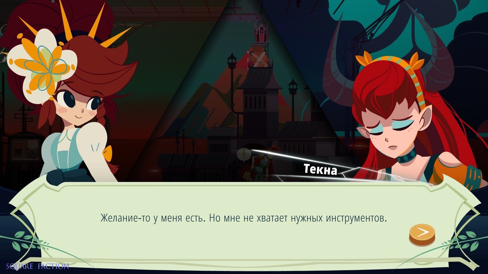 • Поговорите с сестрами Вулкан во дворце. Фения решила, что пришло время залечить старую рану, которая тревожила ее много лет. Получите от Вулкан «Книгу о машинерии».