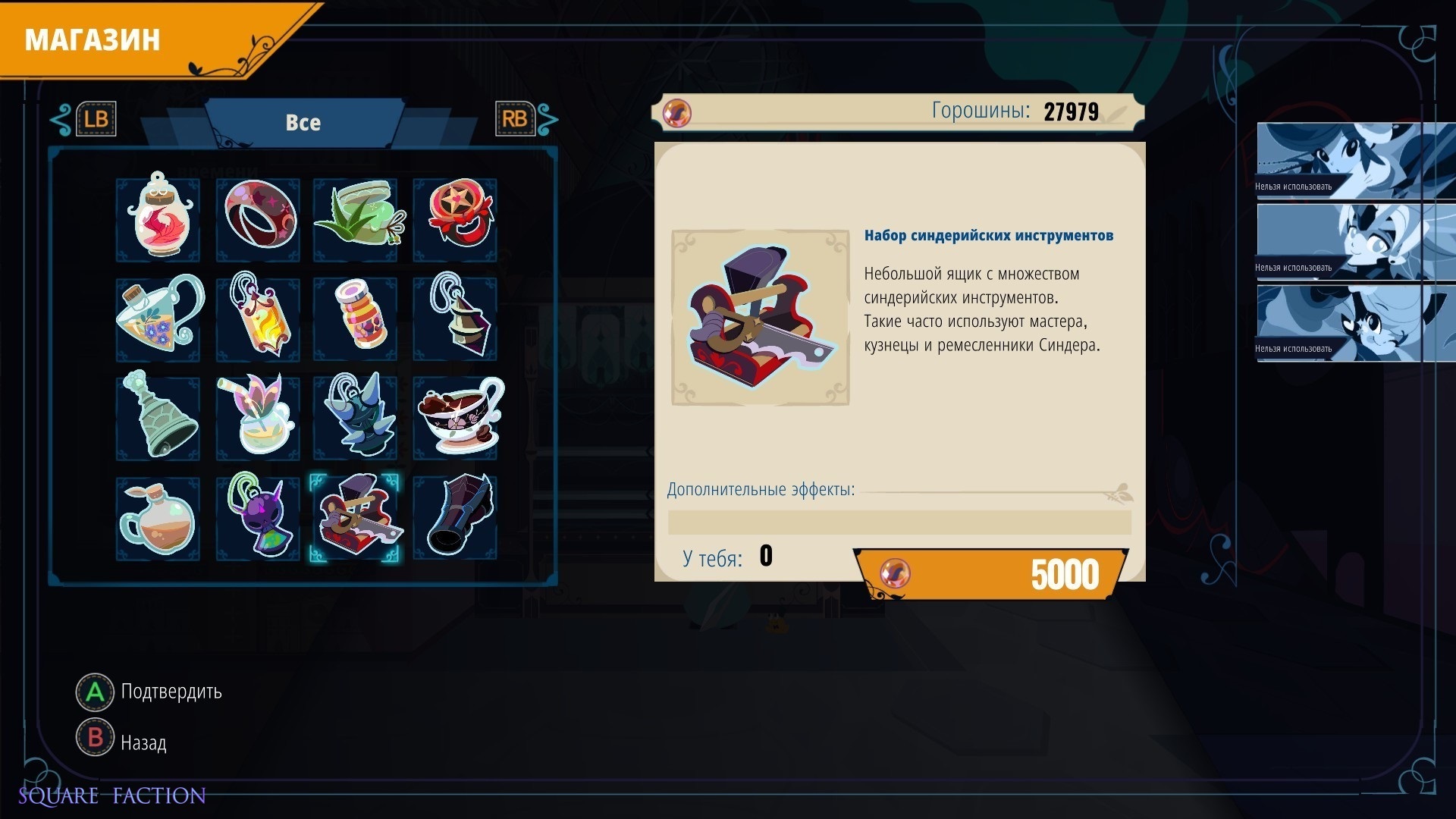 • Поговорите с Текной на пристани. Приобретите в магазине «Набор синдерийских инструментов» за 5000 горошин и вернитесь с ними обратно к ней.
