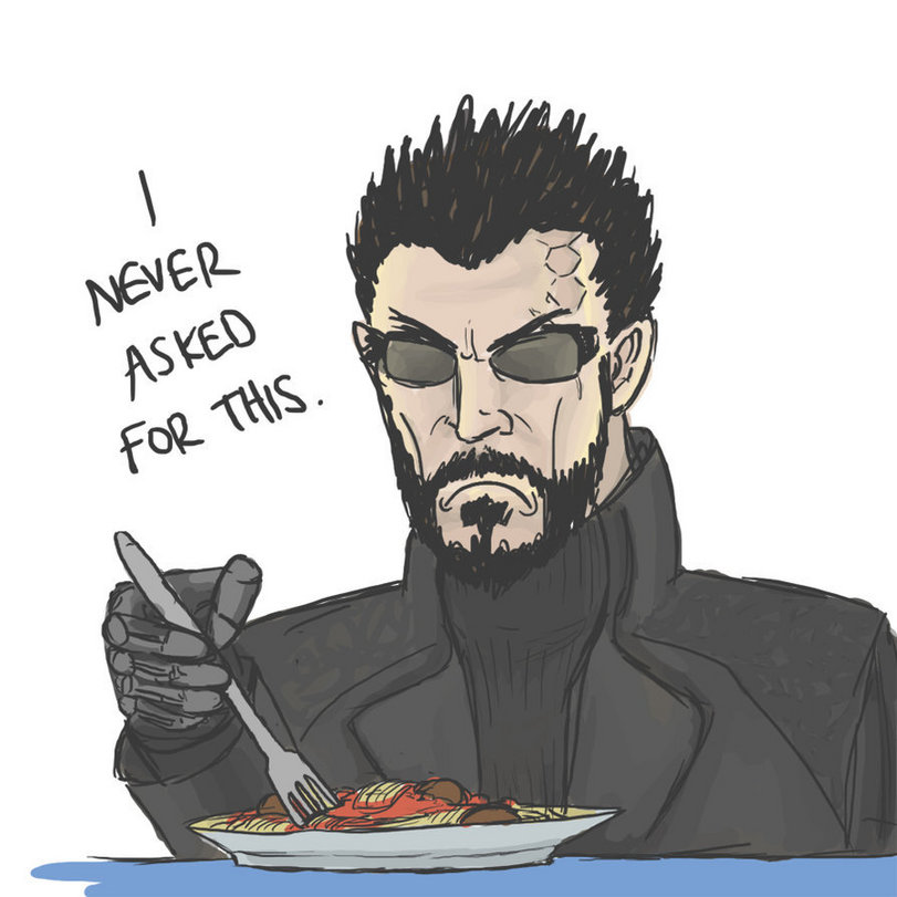 Специально для Руматы и Энгери, решил подробно написать своё IMHO по поводу Deus Ex: Human Revolution. Многое из нижеследующего может показаться вам нечестным, необоснованным и даже возмутительным, но я заранее хочу предупредить, что мне пофиг, и я не стану проходить эту игру повторно и копаться в её истории, чтобы на каждое заявление о моей неправоте находить конкретные эпизоды, цитаты и скриншоты, исправлять неточности и извиняться, если что-то спутал или приукрасил.
