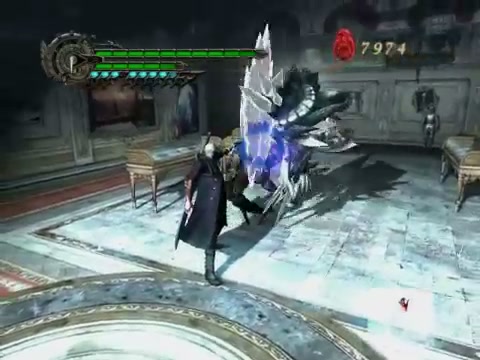 Здесь вам поможет стиль Гвардеец, а именно Гвардейский блок. Если кто не в курсе: Гвардейский блок – это блок за долю секунды до атаки противника. Звучит сложно, выполняется еще сложнее. Ну хотя кому как… Вообще, вещь обалденная, если научиться выполнять сие действие. Чтобы поднять стиль вполне достаточно выполнить блок несколько раз. Если пропустите атаку уровень стиля, само собой, упадет. Лучше всего блокировать атаки Фростов. Пугал при желании можете убить, чтоб не путались под ногами. Чтобы было удобнее блокировать удары, можете выйти в коридор и стать в углу: тогда тыл у Данте будет прикрыт. И снова же: не забываем дразниться :З