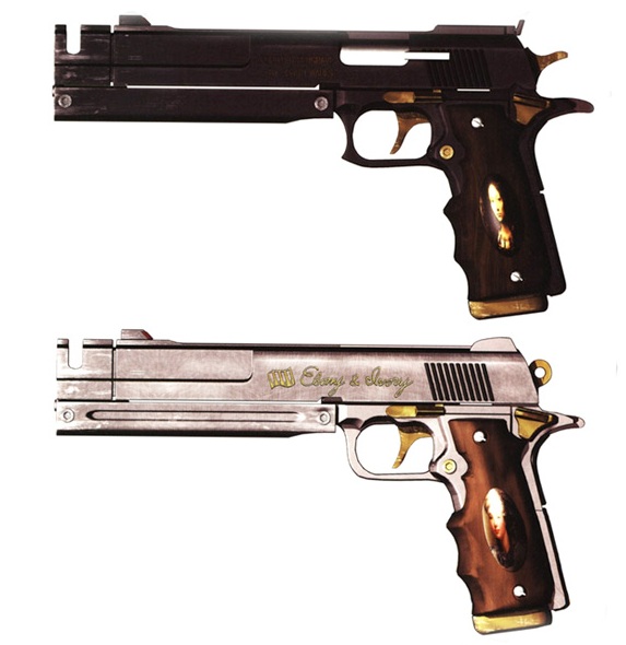 Пистолеты, созданные специально для Данте. Выстрелы из них несут небольшой урон, но имеют очень высокую скорость стрельбы. Данте обычно использует оба пистолета одновременно. Правая рука Айвори скорострельное оружие. Левая рука Эбони дальнобойное оружие.
