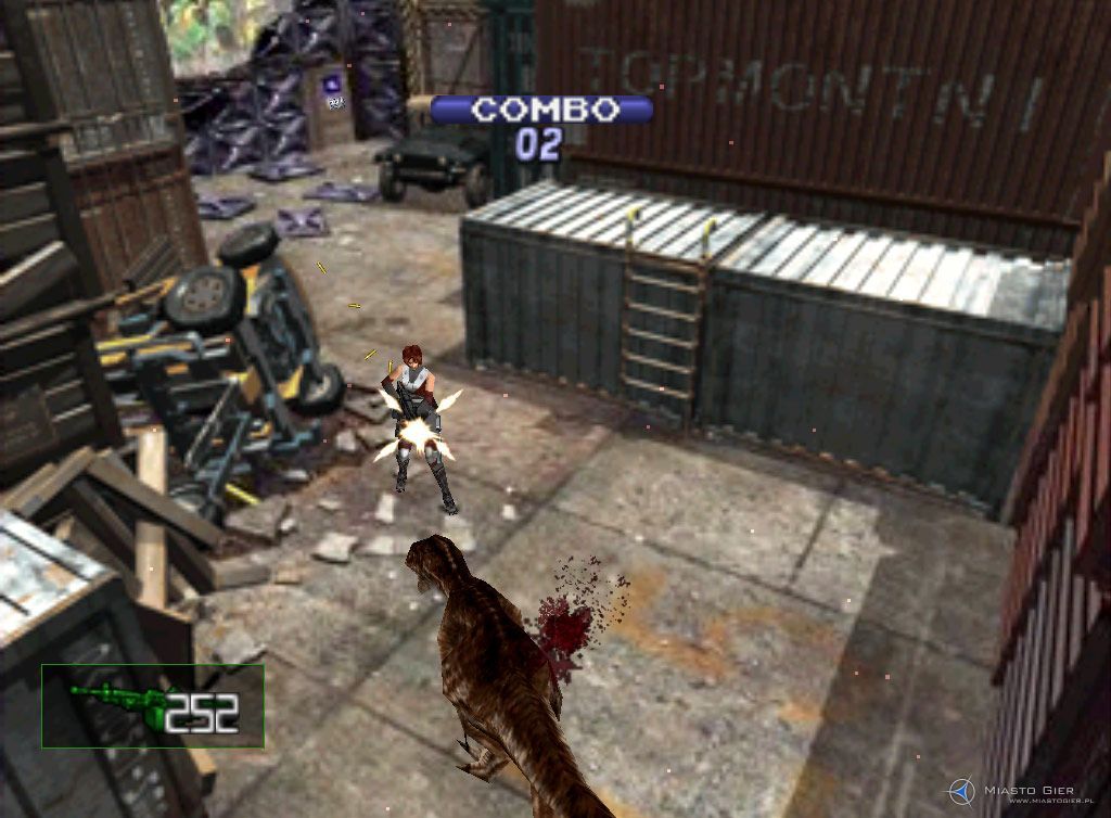Sub-Machine Gun (2h) Два автомата в руках. Атака каждого 20. Но при такой скорости выстрела, это чуть ли не лучшее оружие для Регины. Именно с ним нужно бегать по джунглям и набивать очки. Главной фишкой тут считается то, что угол обстрела огромный. Каждый из автоматов можно направить в свою сторону и подойти к вам будет очень сложно. Также, при начале стрельбы, они останавливают врагов, что даёт ещё большее преимущество. Весьма неплохо подходит для уничтожения птерадонтов. Оптимальное количество магазина 3000.