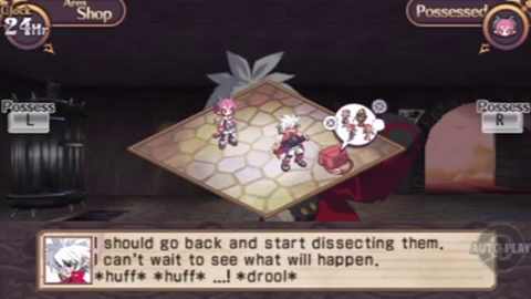22 часа, холл. Используем Mind Control на Этне: “I’ll just watch, dood.”. Вселяемся в Лахарла. (Possessed: Laharl)