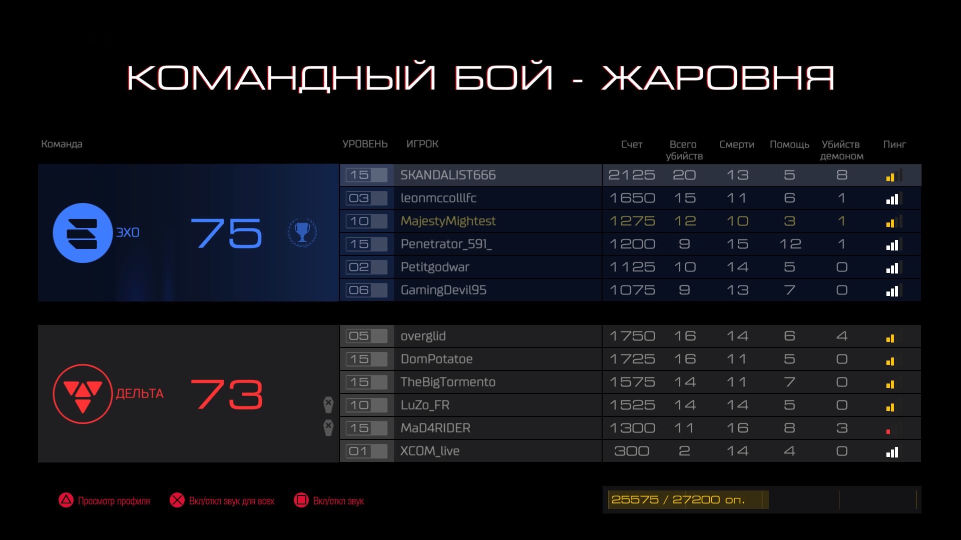- Задача командного дезматча набрать 75 килов. И ВСЕГДА это удается. Или одной доминирующей команде, или две команды рука об руку идут и чуть ли не 74/75 заканчивают (такое часто бывает). 12 игроков 130-150 убийств за 10 минут матча… Думаю вы поняли, на что я намекаю. На масштабы резни, творящейся на экране.