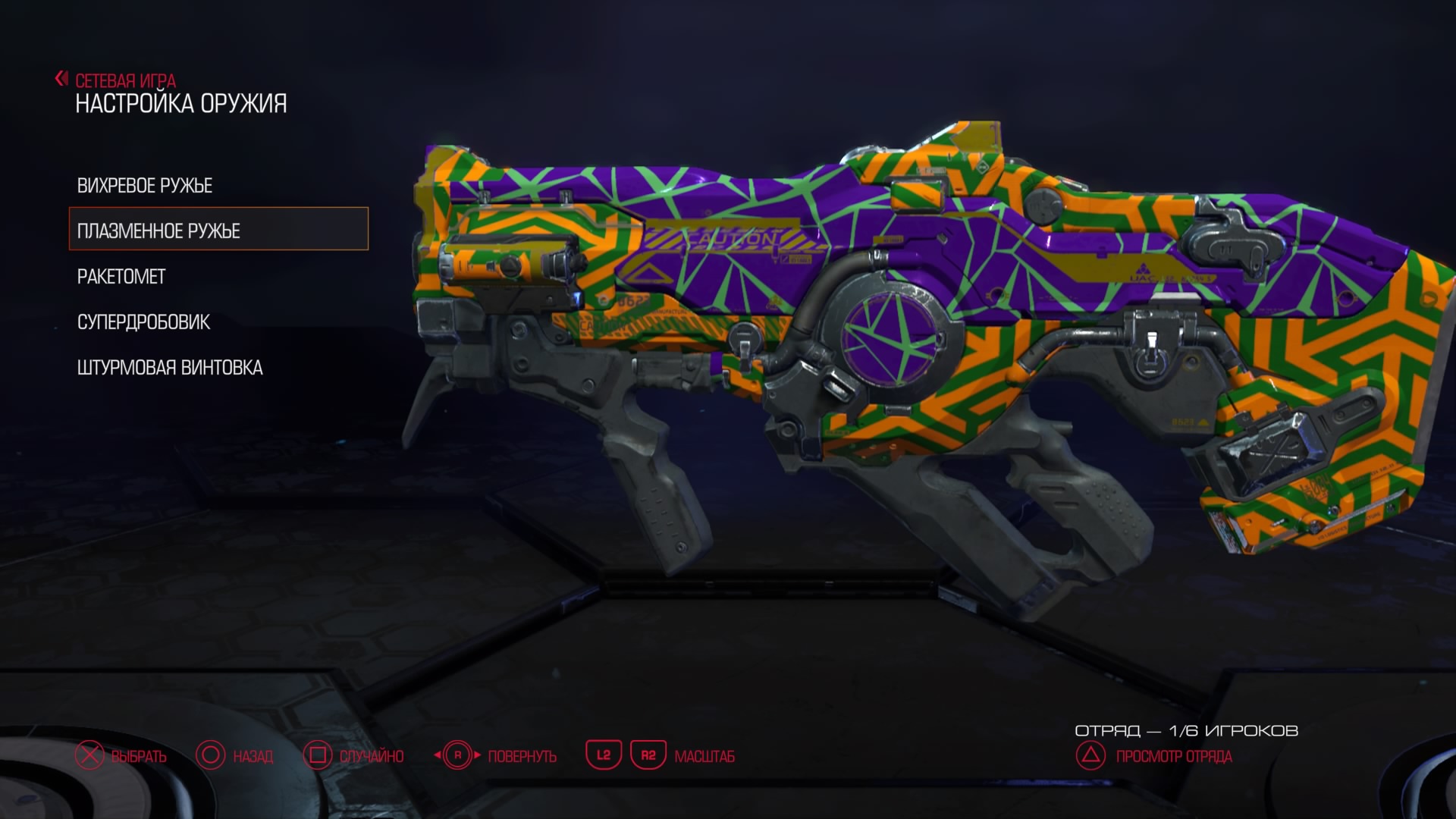 - О кастомизации оружия каждому оружию можно заделать два типа узоров, у каждого узора два цвета (основной и вспомогательный), затем расцветка логотипов (на Вихревом Ружье это вообще автограф Джона Ромеро).