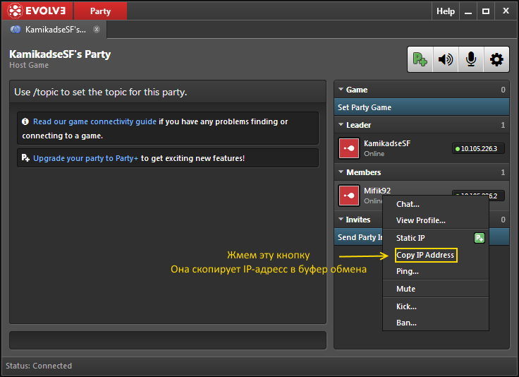 Прежде всего стоит обзавестись программой, которая позволит вам играть по сети. Таких программ несколько, например Hamachi или Tunngle, но я рекомендую Evolve. Имея все достоинства Tunngle, она лишена её багов, а так же позволяет создавать свои комнаты (party), вместо того, чтобы использовать какие-то левые. И, в отличии от Hamachi, она бесплатна.