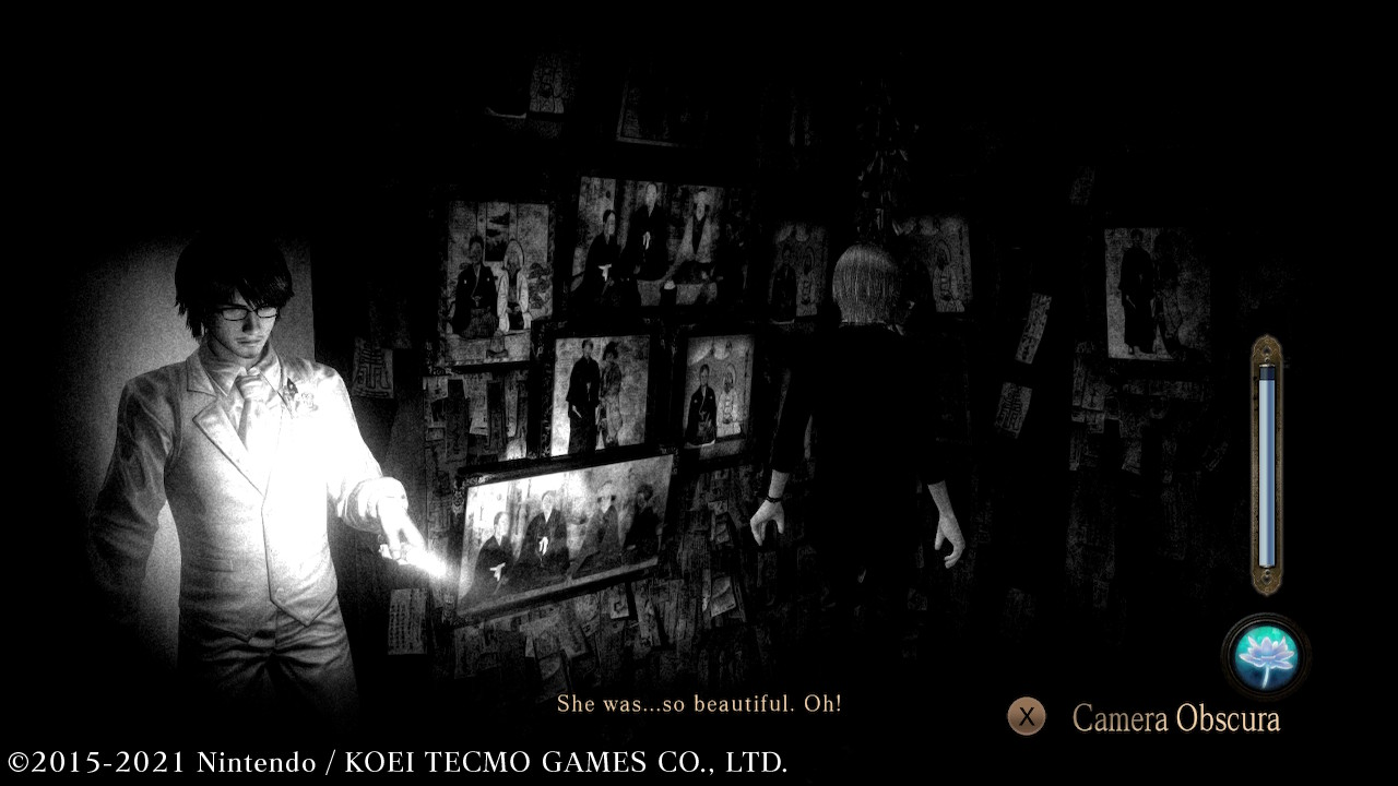 На фото 1) страдания призрака утопленницы (одна из дочерей хозяина спа-курорта Микомори (по-японски «Лес Жриц» мико+мори) есть несколько версий этого призрака, включая кровавую); 2) Рен Ходзё вытягивает Fatal Glance (призрачное воспоминание) из умирающего призрака, это механика геймплея, которая используется уже на моментах смерти призрака, надо успеть подбежать и прикоснуться в медленной по умолчанию (надо это учитывать и успевать в тайминги) анимации, это в первый раз рваного VHS качества синематик с историей призрака, а в последующие разы просто дополнительные очки на прокачку Камеры Обскуры. НО ряд призраков имеет сразу по 2-4 Fatal Glance синематика. Это самые значимые для сюжета игры именные призраки.