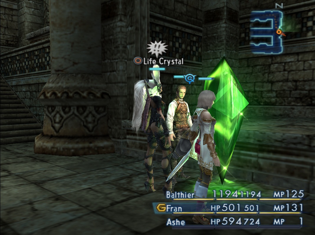 Walk of Relevation интересен тем, что посередине будет очень необычный зелёный кристалл. Можете порадоваться редкой находке, это один из трёх мимиков мира Ивалис, маскирующийся под кристалл восстановления. Наколдуйте на партию Shell и вступайте в схватку, ничего особого не будет. После битвы мы получим обыкновенный синий кристалл сохранения.