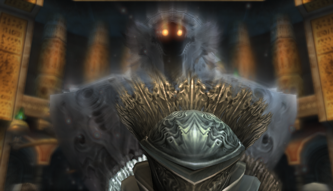 Колосс поднимает огромный меч и открывает проход дальше в Ward of the Sword King (туда можно быстро попасть из телепорта в самом начале храма). За проходом будет большой заледеневший зал, где нас будет ждать ещё один босс Эспер Mateus.