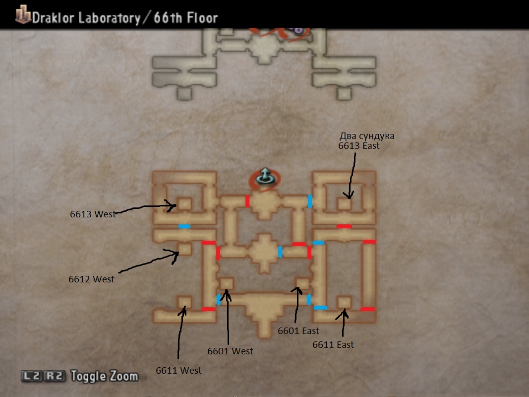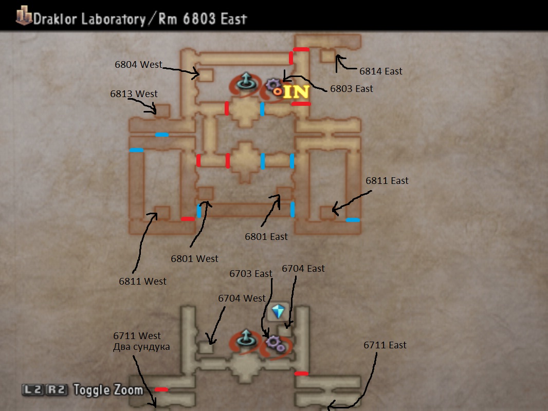 | 6711 West | Сундуки (2) | 6704 East | Кристалл сохранения |