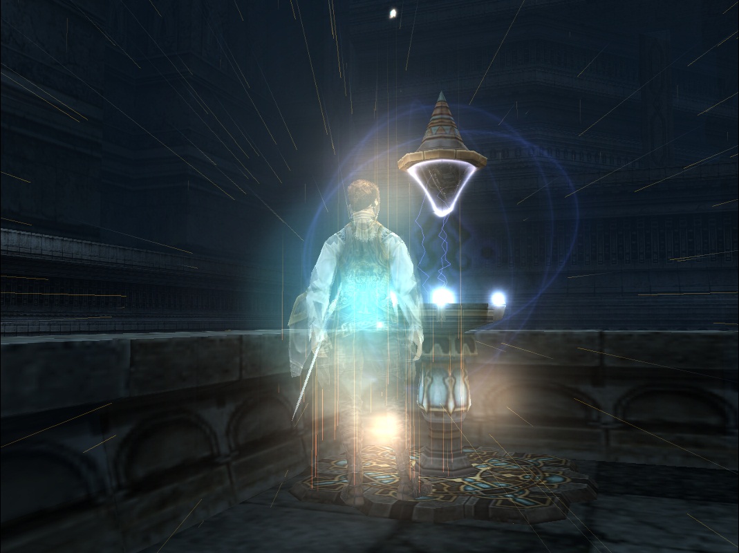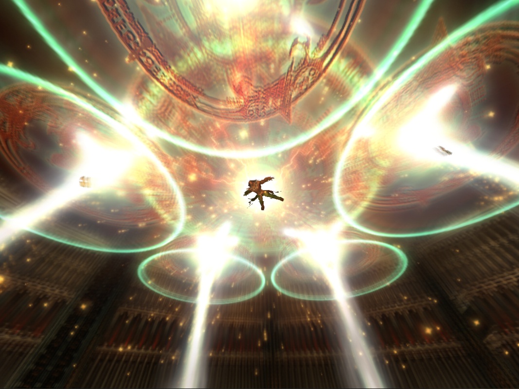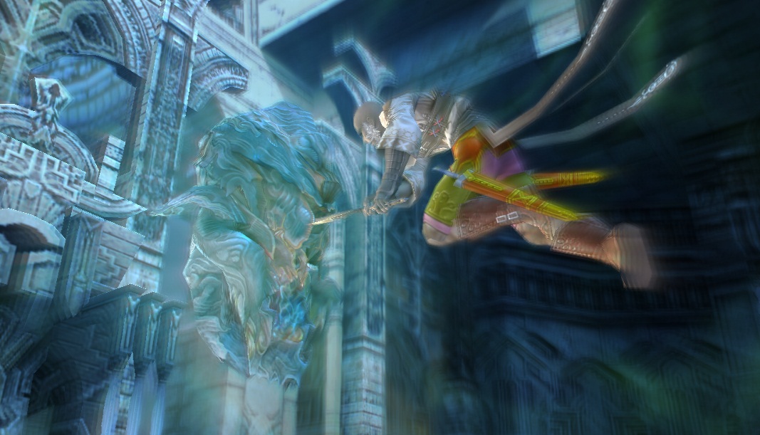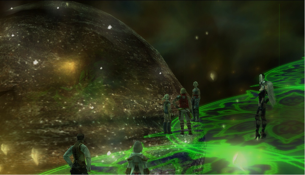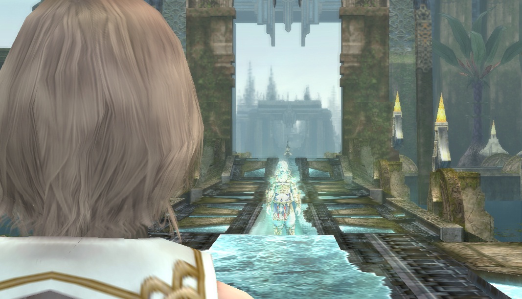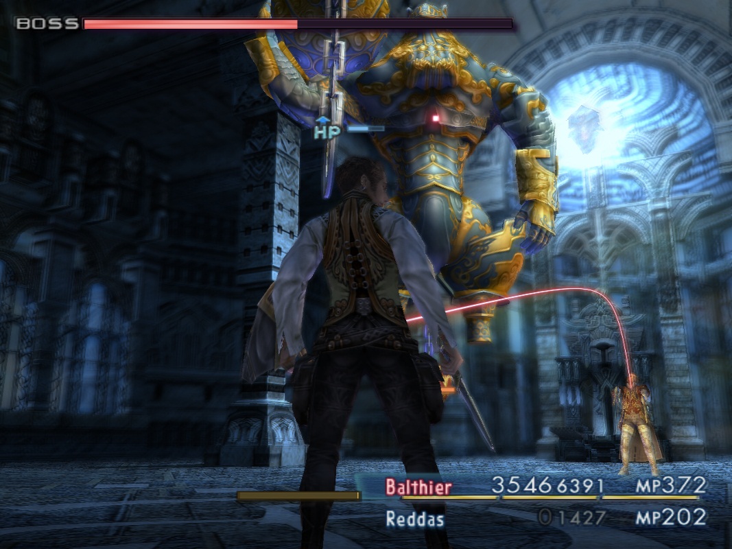 Команда добралась до ядра кристалла огромного нетицита (если направите камеру вниз, то сможете заметить небольшой дворец у окончания кристалла, в который нас отправит следующий телепорт). Такой камень настолько силён, что может уничтожить весь Ивалис, если владелец пожелает того. У Ашелии желания использовать такую разрушительную вещь явно нет. Сохранитесь у кристалла, используйте все возможные положительные статусы и приготовьтесь к схватке с очередным боссом.