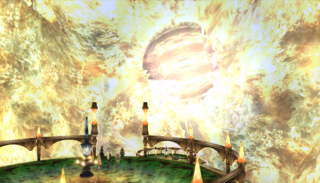 На этом боссы в Гирувегане заканчиваются (можете не переживать за НР). Проходите вперёд, к Empyrean Way Stone (ваша обыкновенная точка телепортации), который перенесёт всех высоко в небо, к божественным существам оккуриям.