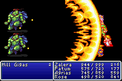 Firaga наносит огнем повреждения в 50-200 очков. Относится к типу Fire. Как видите, разброс очень большой, так что среднее подобрать тоже очень сложно. Более эффективно против врагов ледяной стихии, менее всего эффективно против огненных, к земляным средне, но больше, чем к врагам молнии.