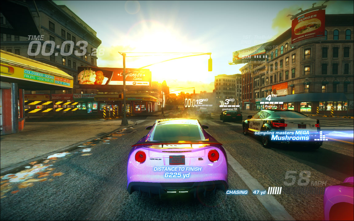 Первая часть FlatOut не была чем-то экстраординарным, однако, игра наделала много шуму, вторая часть стала настоящей легендой в своем жанре. Да, сейчас мне скажут, что есть BurnOut: Paradise – да, у игры есть некая схожесть с FlatOut 2, однако, это немного из другой оперы. Ultimate Carnage – слегка улучшенная версия второй части, с парой новых тачек, трасс и персонажей, а главное, она вышла на Xbox 360, на PC появилась игра с платформой GFWL, которая стала предметом ненависти миллионов геймеров. Третью часть отдали на разработку кому-то не тому, в итоге вышло что-то мерзкое, абсолютно не играбельное и не имеющее отношения к серии, не смотря на то, что продукт носит гордое имя FlatOut… Зато в 2012 году Bugbear сделали Ridge Racer Unbounded – достойную игру– с разрушениями, классным саундтреком. Жаль, что игру многие не оценили по достоинству – фанаты Ridge Racer плевались от разрушений, нестандартного для той серии геймплея и Скриллекса. Фанаты FlatOut плевались из-за нестандартного места действия (что-то напоминающее мегаполис) и саундтрека (транс от Ridge Racer, дабстеп – понятно от кого). Хотя, мне игра очень даже пришлась по нраву. Ну а потом Bugbear сделали онлайновую Ridge Racer: Driftopia – по сути, это free-2-play версия Unbounded. Пара скриншотов из нее: