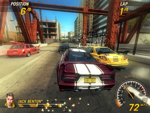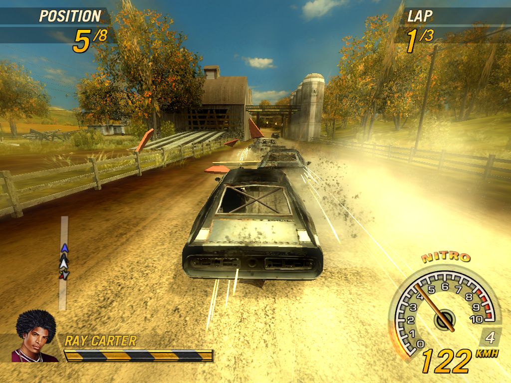 Вся гоночная карьера в игре делится на три класса: дерби, профессиональные гонки и стритрейсинг. В первом классе представлены авто, потрепанные временем, но очень надежные. В профессиональном классе представлены тачки более презентабельного вида, в стритрейсинге – самые быстрые и красивые. Физика в игре радует – автомобили бьются почти как в реальности: стекла разлетаются на мелкие кусочки, колеса тоже могут отваливаться – ухудшится управляемость автомобилем. Кстати, об управляемости: есть мастерская, где можно всячески улучшать физические параметры, влияющие на скорость, мощность, прочность и тому подобные характеристики машины. А вот перекрасить корпус не выйдет – цвет можно выбрать только при покупке. А среди бонусных автомобилей есть, например бэтмобиль (Flatmobile) и школьный автобус.