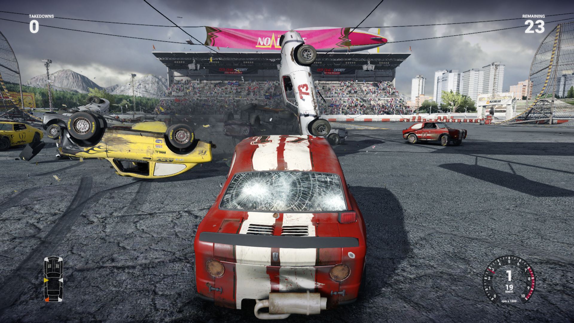 Начать стоит с определения жанра игры. Если одним словом описать геймплей, то это… автопорно. Не, ну а в какой игре вы еще увидите, как почти десяток автомобилей в порывах страсти пытаясь разбить к чертям друг друга? Где вы еще сможете проехаться через торговый центр, попутно снося все, что бьется под мощный саундтрек? Нигде. Игра уникальна.